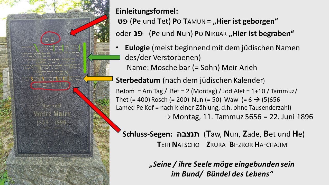 Beispiel einer jüdischen Grabinschrift Jüdische Grabmale_Bildhauer aus Schmie